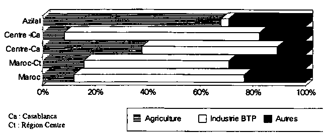 La population de la province d'Azilal est à 90% rurale. La structure du PIB provincial montre à la fois la place prédominante de l'agriculture, la quasi-inexistence du secteur industriel, et un secteur tertiaire hypertrophié.