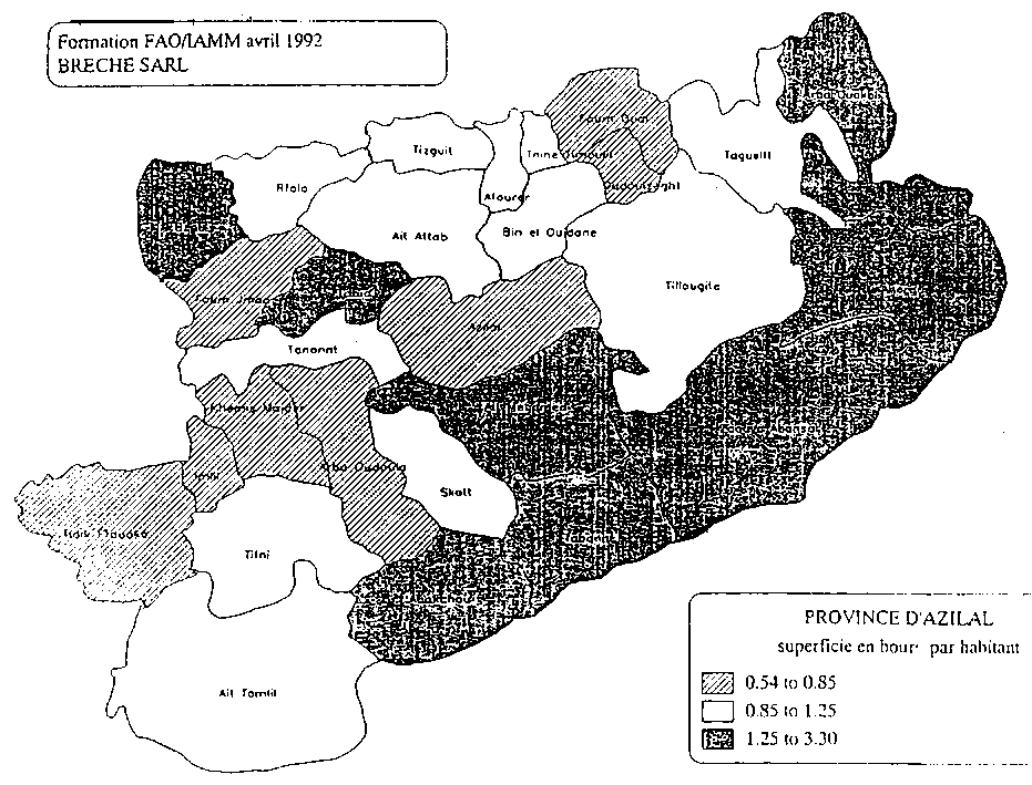 La pauvreté de la province d'Azilal, rattachée à cette zone riche, est donc d'autant plus frappante: un PIB/habitant de seulement 1.700 DH/an (environ 270 US$), et un revenu agricole par habitant rural de moins de 1.300 DH/an (environ 200 US$).