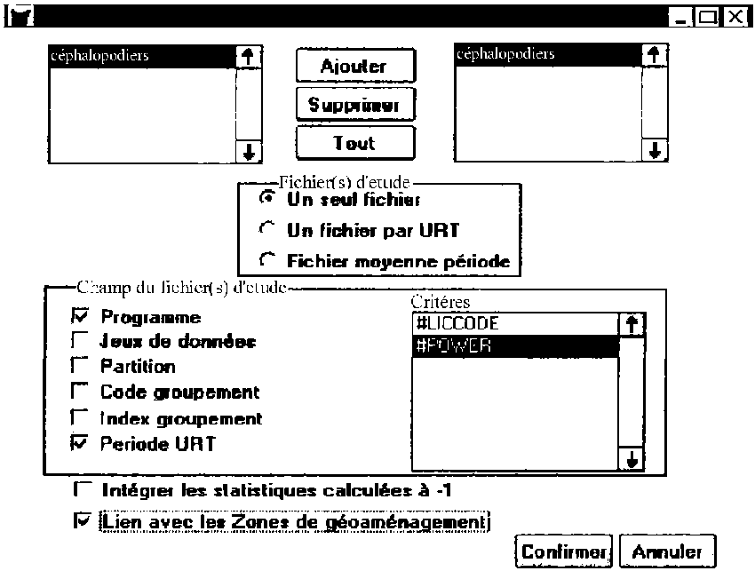 FIGURE 4B: ECRAN DE CHOIX DES CRITERES DE GROUPEMENT