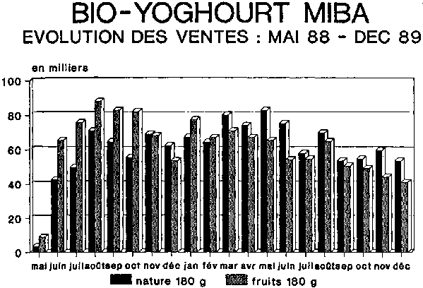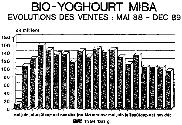 BIO-YOGHOURT MIBA - ÉVOLUTION DES VENTES: MAI 88 - DEC 89