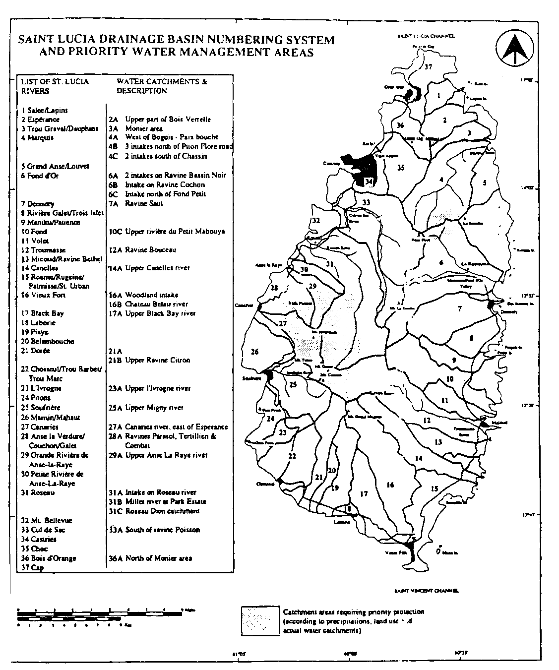 Figure 2.2(1): St. Lucia basin numbering system and priority management areas