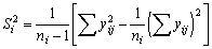 , where Sw2 is the variance of the individuals of the ith primary unit about the unit mean. The variance of the estimated population mean will be made up of two parts - the variance of the estimated unit means about the true unit means, and the variance of the latter about the population mean; that is