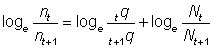 This has the obvious special case where t = one year. The same formulae also hold when the true abundances are not known, but indices of them, e.g. catches per unit effort, are available, i.e. number n0, n1 proportional to N0, N1 then