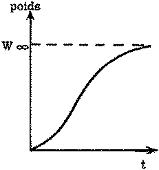 Si l'on porte sur un graphique la longueur d'un poisson, crustacé ou bivalve en fonction de son âge, on obtient une courbe dont la pente décroît continûment quand l'âge augmente, et qui s'approche d'une asymptote supérieure parallèle à l'axe des X (figure 3.1.1). Les courbes du poids en fonction de l'âge s'approchent elles aussi d'une asymptote supérieure, mais sont habituellement sigmoïdes asymétriques, l'inflexion se faisant au tiers environ du poids asymptotique (figure 3.1.2).