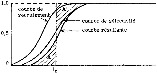 FIGURE 7.2. - Combinaison d'une courbe de sélectivité et du recrutement. Recrutement sur une série de longueurs.
