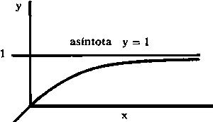 Algunas curvas tienen una asíntota, es decir, una línea recta a la cual se acerca la curva cada vez más a medida que x se hace extraordinariamente grande (o extraordinariamente pequeño); en forma más precisa, son tangentes a la curva cuando x = ¥ (0 -¥). Por ejemplo: y =ax con a < 1 (véase fig. 2.8) tiene la asíntota y = 0; las curvas y = 1 - e-x e y = 1 - e-2x tienen ambas la asíntonta y = 1, aproximándose la segunda de ellas a esta asíntota bastante más rápidamente.
