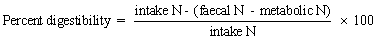 Chromium oxide (Cr2O3) mixed with prepared diets and measured in the faeces provides a general comparison of the overall digestibility of a feed expressed as: