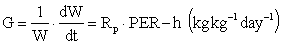 Then G = RpPER - h = 0.01 . 2 - 0.01 = 0.01 kg kg-1day-1