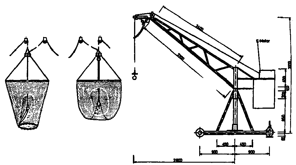 Mechanized dip nets are usually a mobile type of equipment and can be used widely, but two or three men are needed for the operation. Figure 3 shows a mechanized dip net.
