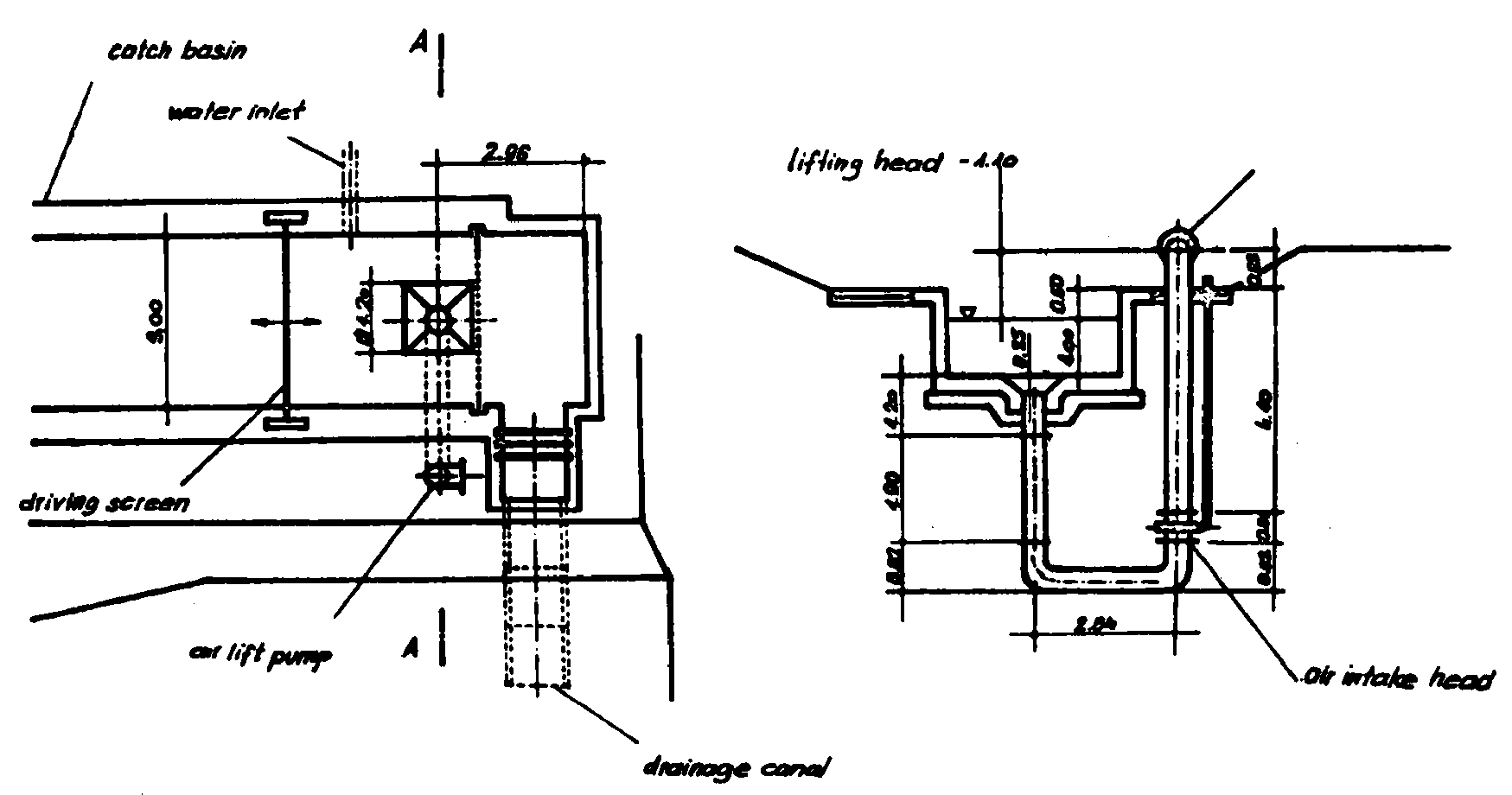 Air lift pumps are used in water management for delivery of water containing solid particles. The principle was adapted successfully for fish lifting, and special air lift pumps have been designed. Even big fish can be lifted without any damage, as there is no moving part inside the delivery pipe, only air bubbles. Figure 10 shows a plan of a mechanized harvesting place with air lift pump. In Figure 11 the water delivery pipe is shown.