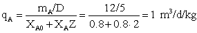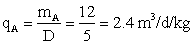 q = specific water flow (m3/kg/d) according to calculation in the previous chapter