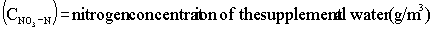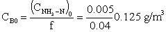 CB0 = total concentration of ammonia-nitrogen of the inflow water (g/m3)