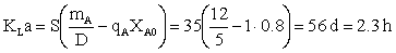 The correlation between the aeration efficiency (XA) of the aerator placed in the recirculated water and the oxygen transfer coefficient applied to characterize aeration (KLar) is shown below: