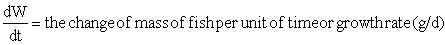 and theoretically must increase in relation to the increasing mass of fish. It reaches the highest value at the end of the growing season, when W = WT.