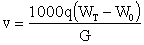 The specific water requirement (m3/g) can be calculated when the specific water flow (q) and the specific growth rate (G) are known, as follows: