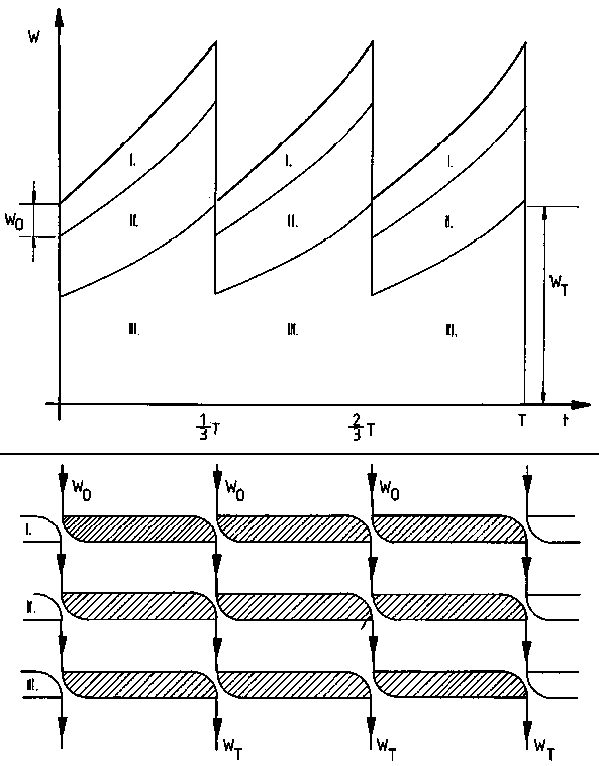 The ratio of amounts of water determined by equations (33) and (34) shows the relationship between the theoretically needed and the actually utilized amount of water. This ratio is called utilization coefficient.