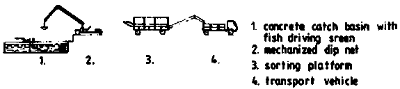 Figure 16. The scheme of complex fish harvesting systems in Hungary a) Mobile mechanized fish harvesting system (Bikal State Farm)