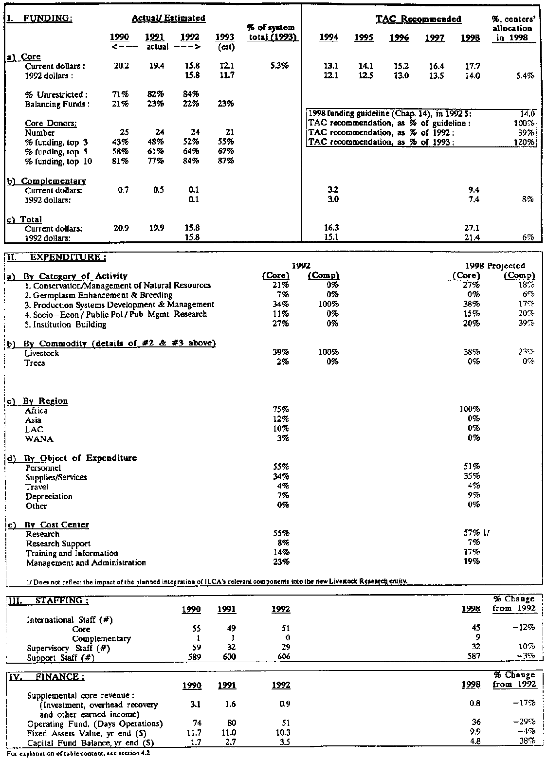 For 1994, TAC recommends core funds for ILCA of US$ 12.1 million in 1992 dollars, or US$ 13.1 million in current values. Together with complementary funds projected at US$ 3.2 million, ILCA's total funding in 1994 would amount to US$ 16.3 million.