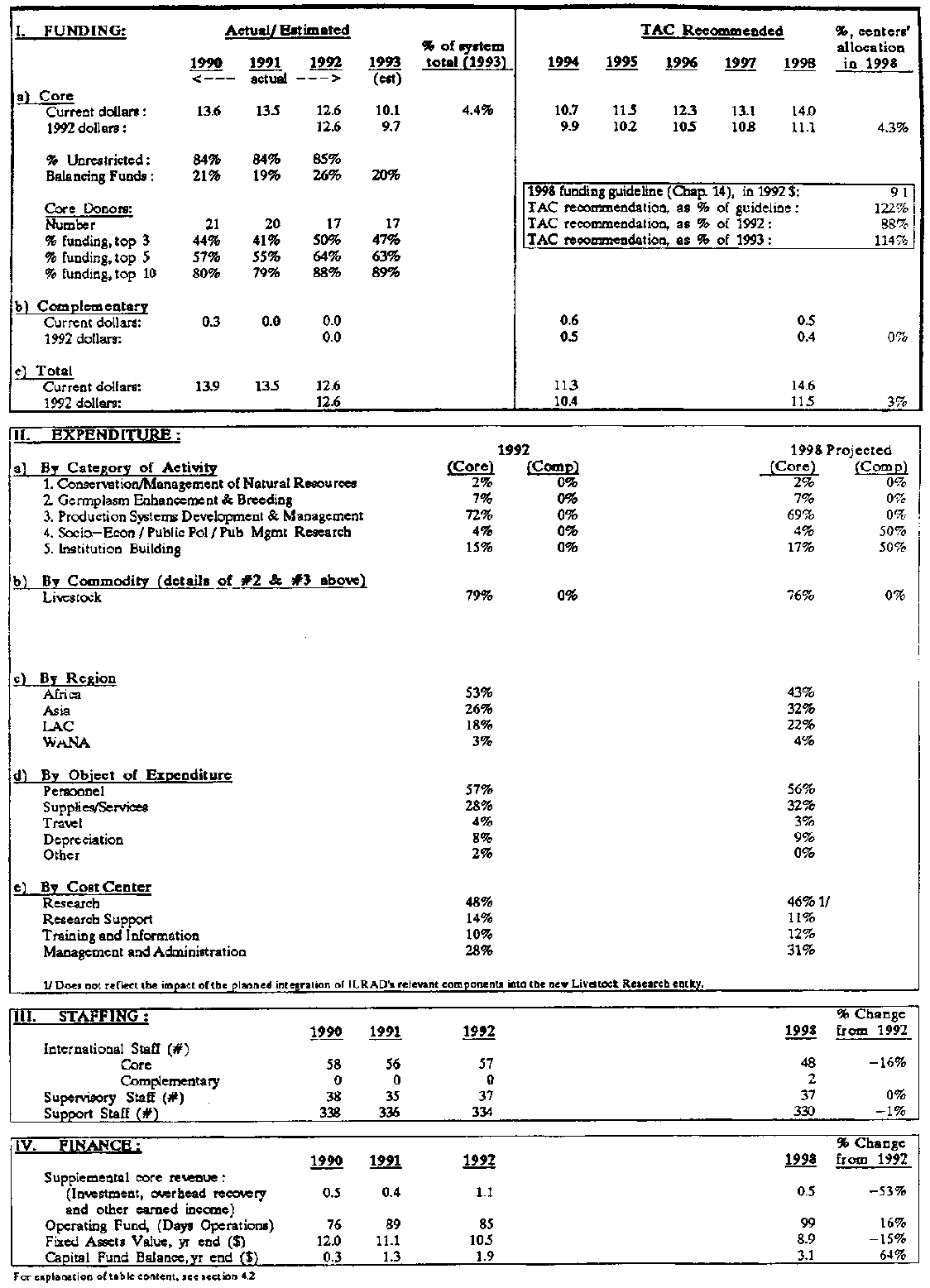 For 1998, ILRAD projects funding of complementary activities of US$ 400.000 (in 1992 values), for which the new livestock research entity will assume responsibility by that time.