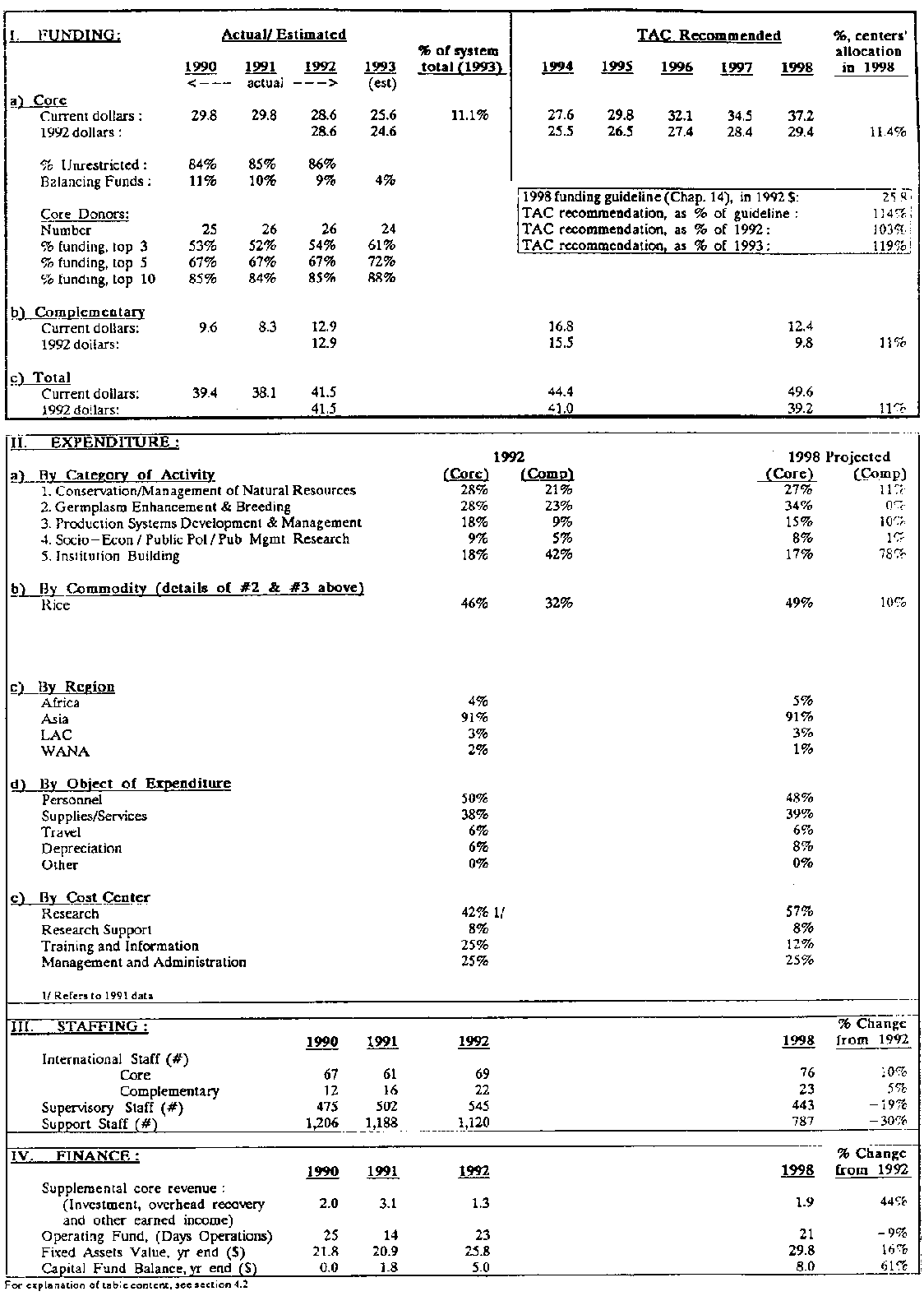 For 1998, IRRI projects complementary funding of US$ 9.8 million (in 1992 values), representing 33% of its recommended core funding.