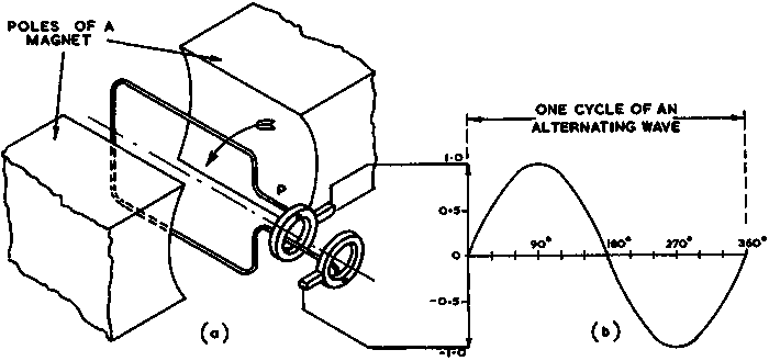 Sources of direct current are used to provide power for the operation of electronic devices and systems but have no other useful function. Direct current can be produced from rotating machines (generators), but the natural output of any such machine is an alternating current wave, the description of which is given in the next section.