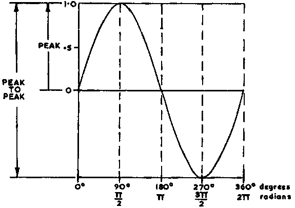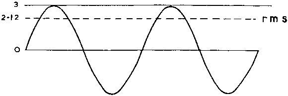 Although peak, or peak-to-peak values must be recorded, this is simply because they are the recognisable points of a sinewave, it is necessary to convert them before making any calculations of power. The reason is that we are concerned with the actual amount of energy involved, but, whereas with DC this could be obtained by the product of voltage V and current A, in the present case these quantities are continuously alternating so will not yield a correct answer (the average value in fact is zero). We must seek the value of alternating current which does the same amount of 'work' as would a DC current if flowing in the same circuit.