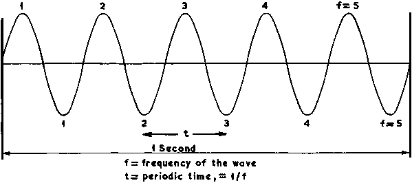 Periodic time (t) is the time taken for completion of a cycle, or for adjacent peaks to occur, see also Figure 11. The sinewave in section 2.3 was defined as Amax sin w t and the completion of a cycle when w t = 2p, therefore t = 2p /2p f = 1/f so the periodic time of a 5 Hz wave is 1/5 second.