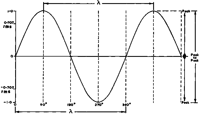 It is clearly seen that the wave is going in one direction for the first 180°, then it goes through zero and reverses direction (polarity) for the next 180°. The maximum values in each direction occur 90° after passing the zeroes. In its pure (undistorted) state, the amplitude and other characteristics of a sinewave can be easily measured but special care must be taken to avoid confusion. For example it is necessary to be absolutely clear in stating that values are from zero to maximum in one direction (peak) or, if quoting from the extreme peak of one direction to the extreme peak in the other direction (peak-to-peak), see Figure 3.