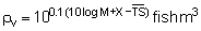 X = (20 log Ro + 2a Ro) - (SL + VR) - 10 log (ct /2) - 10 log- 10 log (ESDU) - (10 log 1.54 + 10 log (SE) + QMgain) (79)