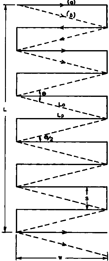 To illustrate the meaning of the above equation we first consider the graphs in Figure 68(a) and note that Lp = 500 for S = 20 and W = 100, corresponding to an angle tan-l (20/100) = 11.31°. Inserting the same values in the above equation we obtain