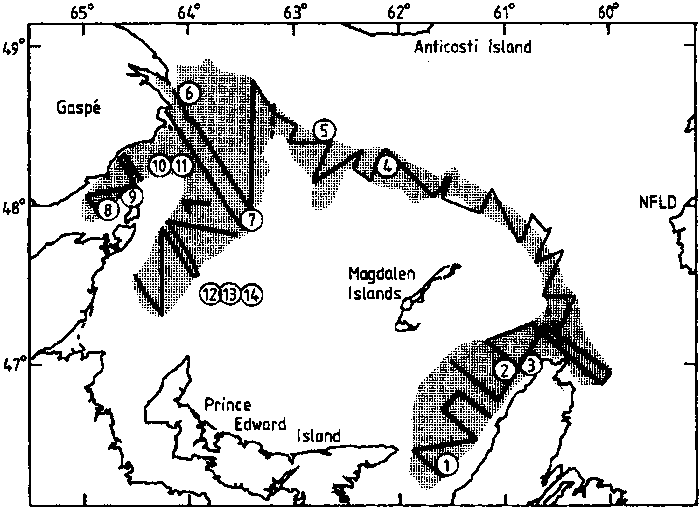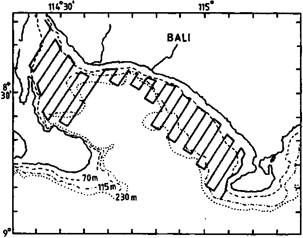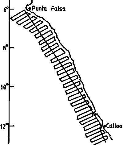 In the design of the grid pattern, due attention should be paid to the operational capacity of the vessel, the quality of its navigational aids and the general safety arrangements. With respect to the last factor it must be borne in mind that many pelagic fish stocks exhibit almost littoral distribution characteristics which often require that the survey vessel continues running the inshore transect in to a depth of 10 m, or even closer to the shore. Obviously in such a situation, a vessel carrying a powerful skiff, fitted with side-thrusters and powerful anchors, would take much less risk operating in shallow waters, than another vessel without such facilities. In addition to these technical considerations, experience has amply demonstrated that the efficiency with which inshore waters can be acoustically sampled depends largely on the competence and co-operation shown by the officer in command of the survey vessel. Hence, good co-operation and collaboration between a captain and a survey cruise leader can be of crucial importance to the efficient conduct of the survey.