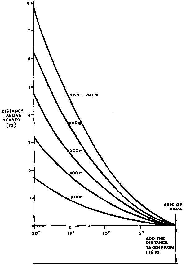 The volume given above for the dead zone relates to one transmission only, whereas in normal survey operation a succession of transmissions occur as the vessel moves along its course. Depending on the beam angle, the speed of the vessel and the depth of water, these transmissions may overlap, especially near the sea bed. These factors therefore, cause some variability in the effective sampled volume of the region where the pulse approaches the height ct /2 above sea bed. But, whatever the beam angle, the depth of water, or the rate of transmission, the distance of ct /2 above the sea bed marks a definite boundary under which no sampling is possible at all.