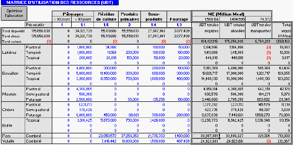 LDPS2 est aussi capable de calculer la taille du troupeau cible et la production possible compte tenu des ressources en fourrages disponibles en utilisant le module "Objectif de ressources".