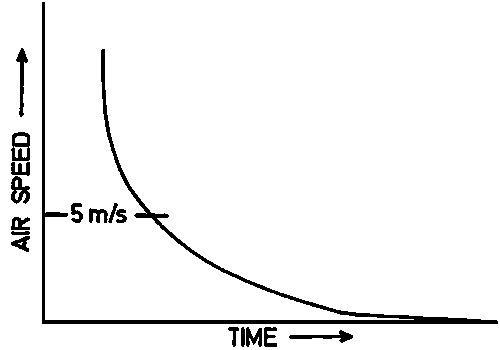 Freezing time is reduced as air speed is increased; up to about 5 m/s the reduction is considerable, but at higher speeds there is little further improvement.