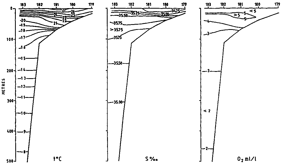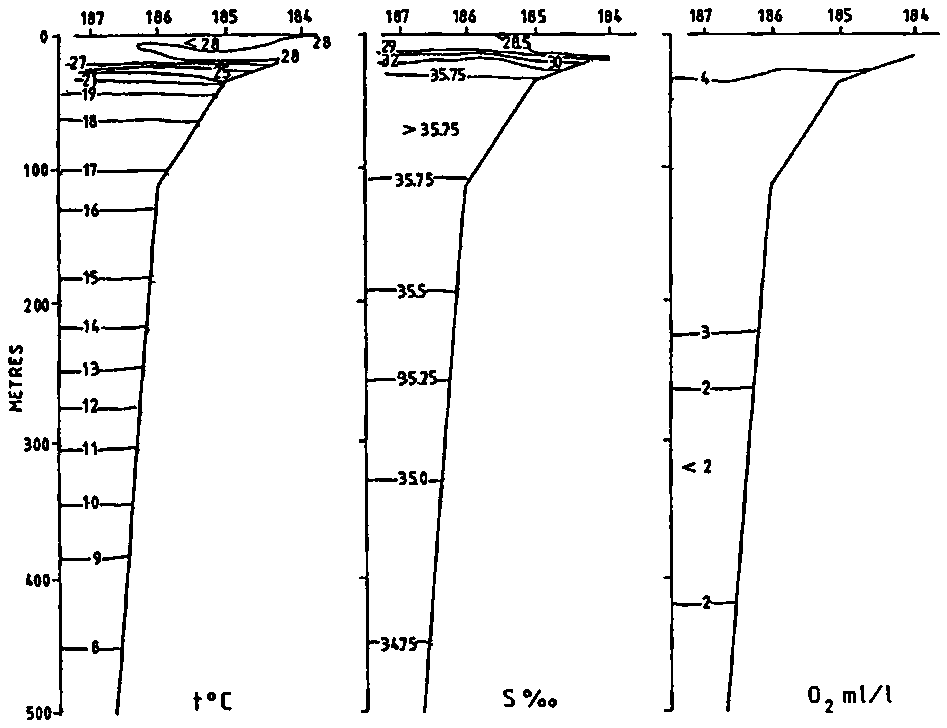 Figure 3. The hydrographical sections. PTE. PANGA 10 DEC 1985