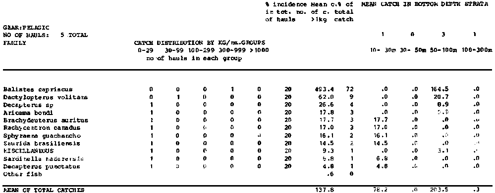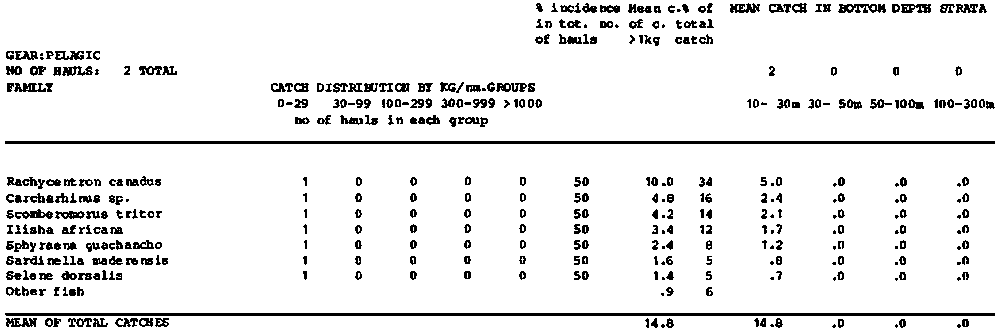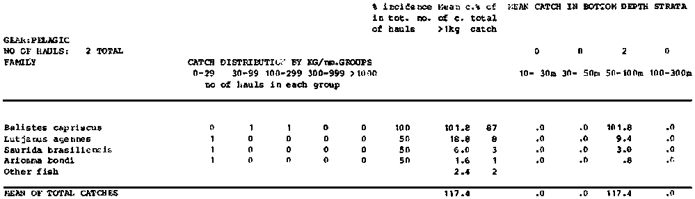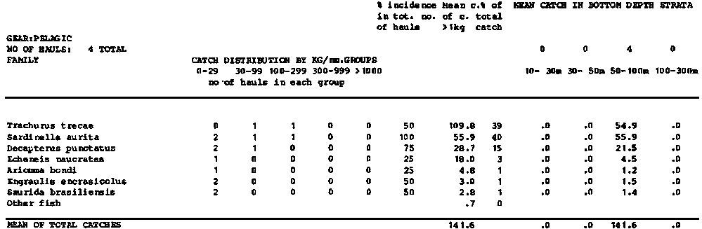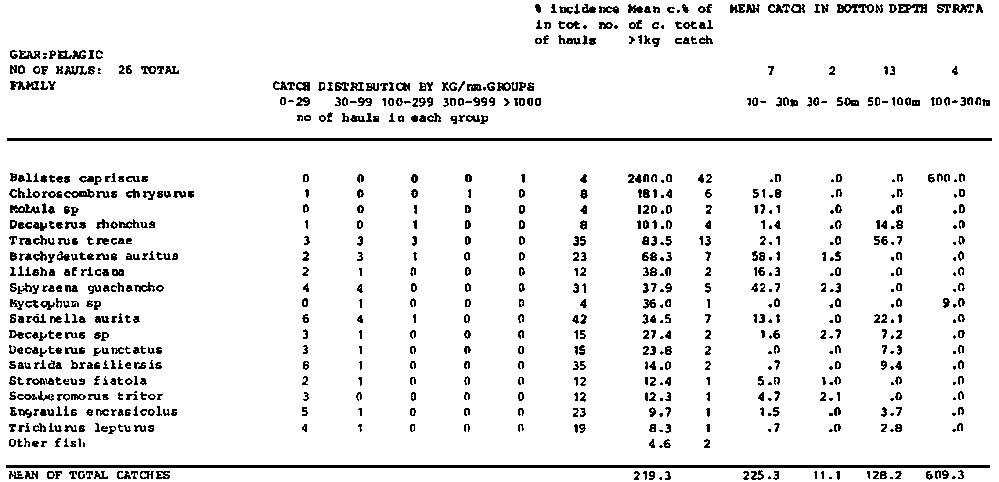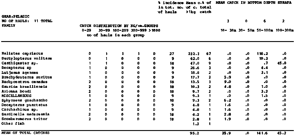 Annex 7. Summary tables of catch compositions by species, surveys, regions and totals for pelagic and bottom hauls separately.