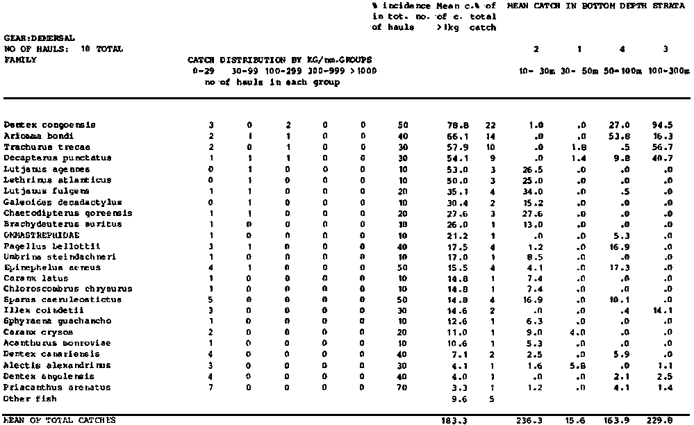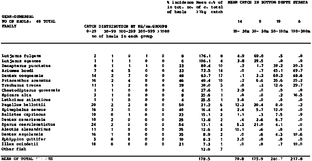 SOUTH OF C. LOPEZ, ALL SURVEYS - DEMERSAL TRAWL FROM ST. 1 TO ST. 210 - Only