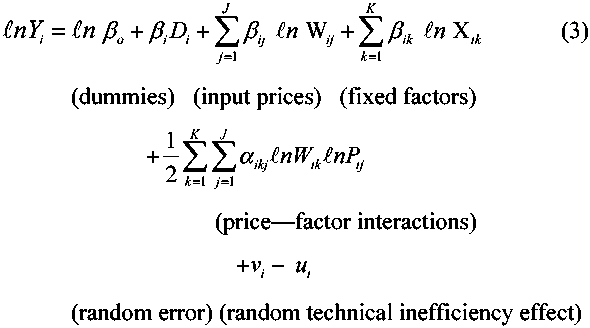 Specification of an estimation model A translog profit frontier is used to specify an estimation model because of the flexibility it allows in estimating parameters where it is not desirable to build in, through model specification, rigid assumptions about substitution relationships among inputs and factors. The full form of the model is:
