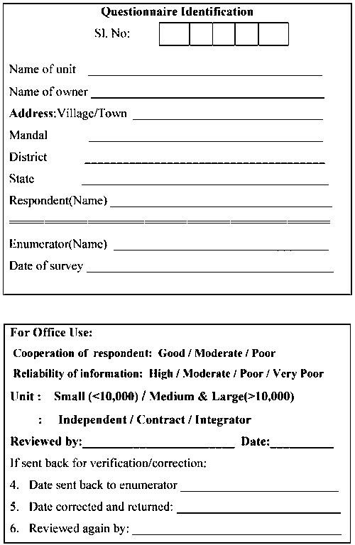 Broiler (Independent) Farm Questionnaire: Haryana/Punjab