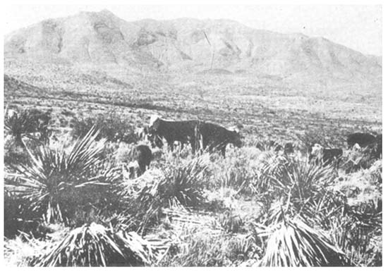 Calf production under low rainfall-in this part of northeast Mexico average rainfall is approximately 280 mm. Yet with very sound management the owner of this ranch, specialized in the production of weaned calves, obtains an 85 percent calf crop with purebred Hereford cows sired by Hereford bulls. First calving takes place at 24 months, without supplementary feeding… but there is only one cow per 20–25 hectares.