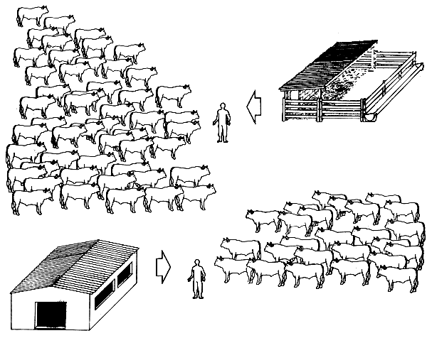 But it must be stressed that yard capacity cannot be expanded indefinitely. While it is true that each American feedlot can accomodate 150–300 head, the situation is different in the developing countries. Herds of this size require highly specialized supervision, which might well not be available.