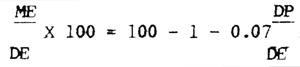 Metabolizable energy (ME) may be calculated using the following equation: