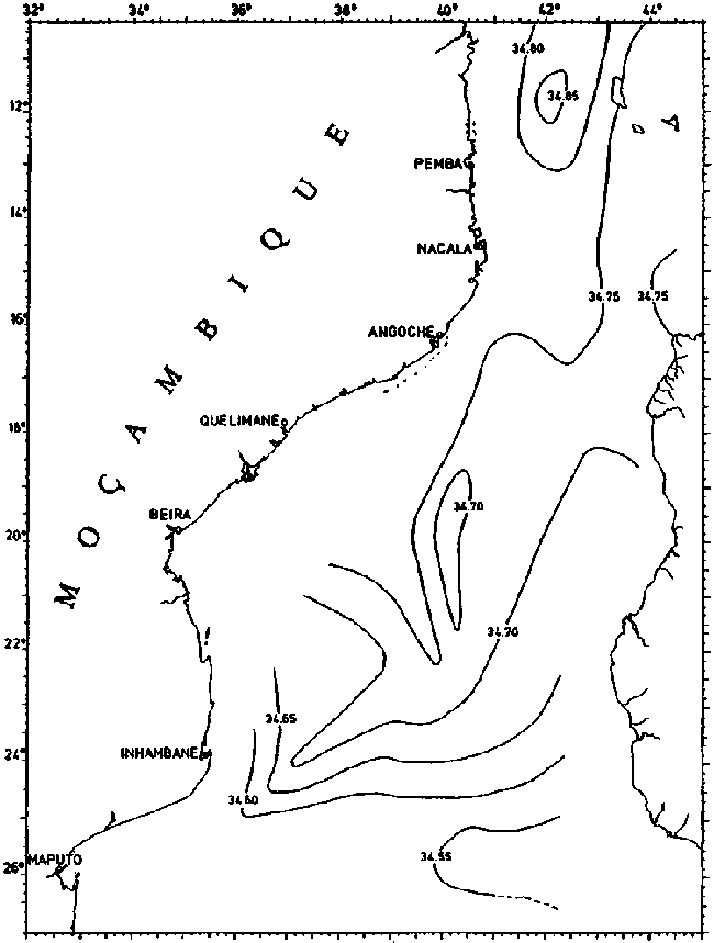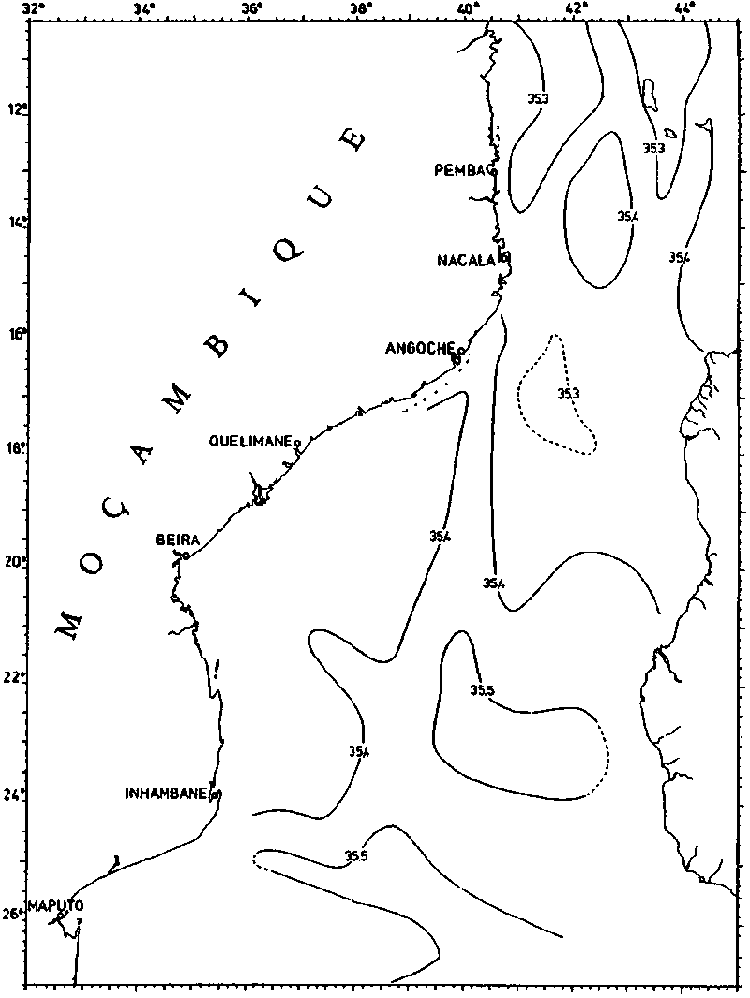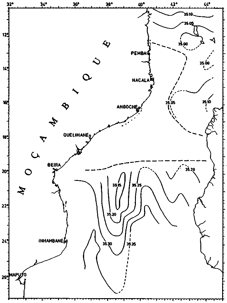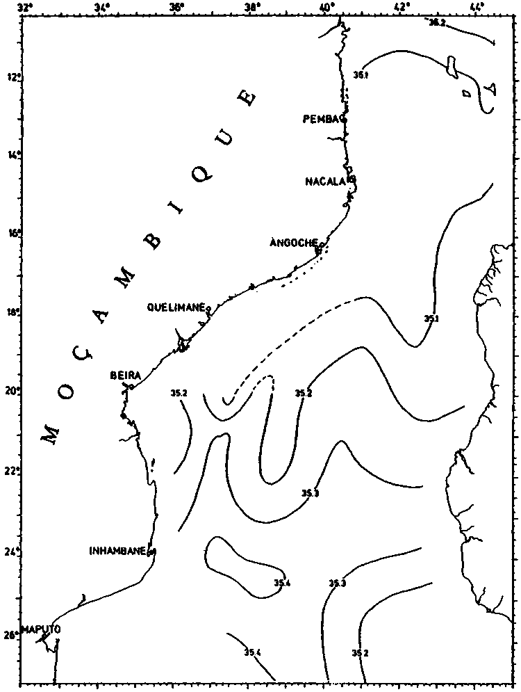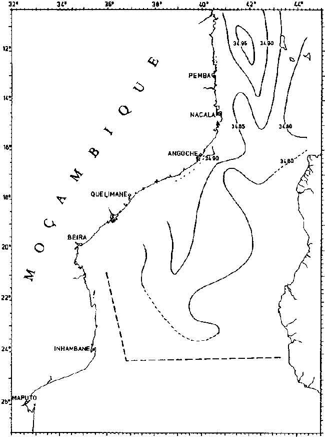 Fig. 22. COMMANDANT ROBERT GIRAUD 1960. Salinity at subsurface salinity maximum.
