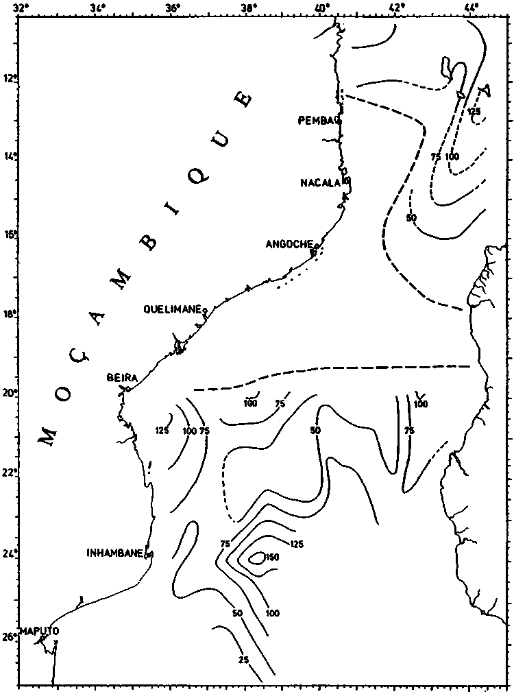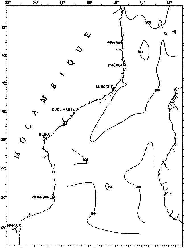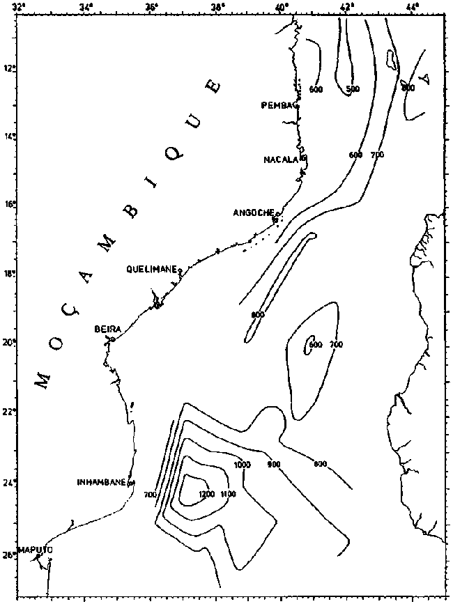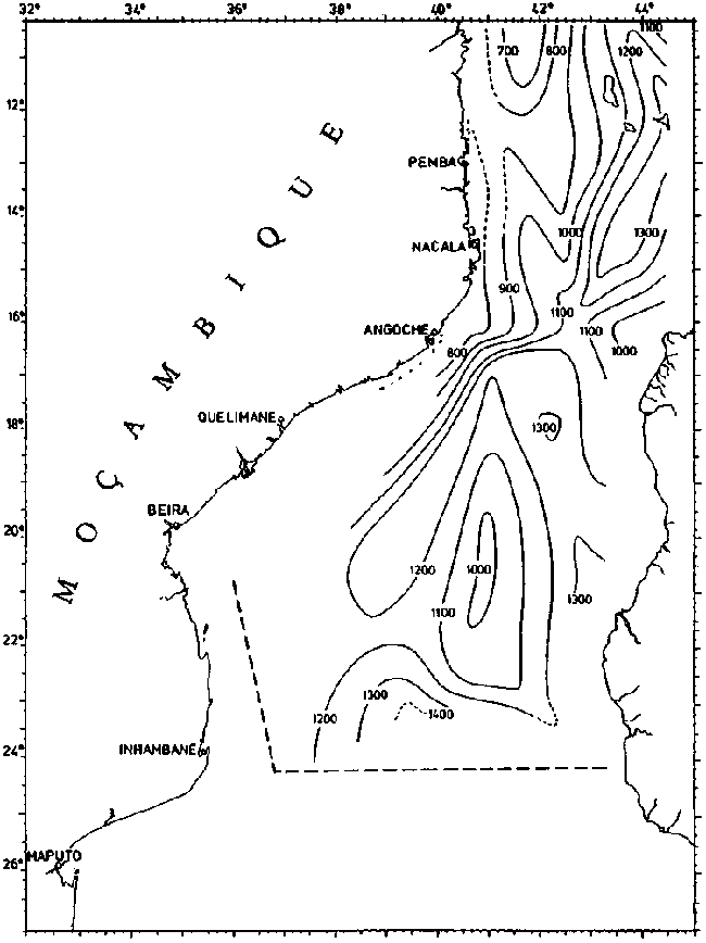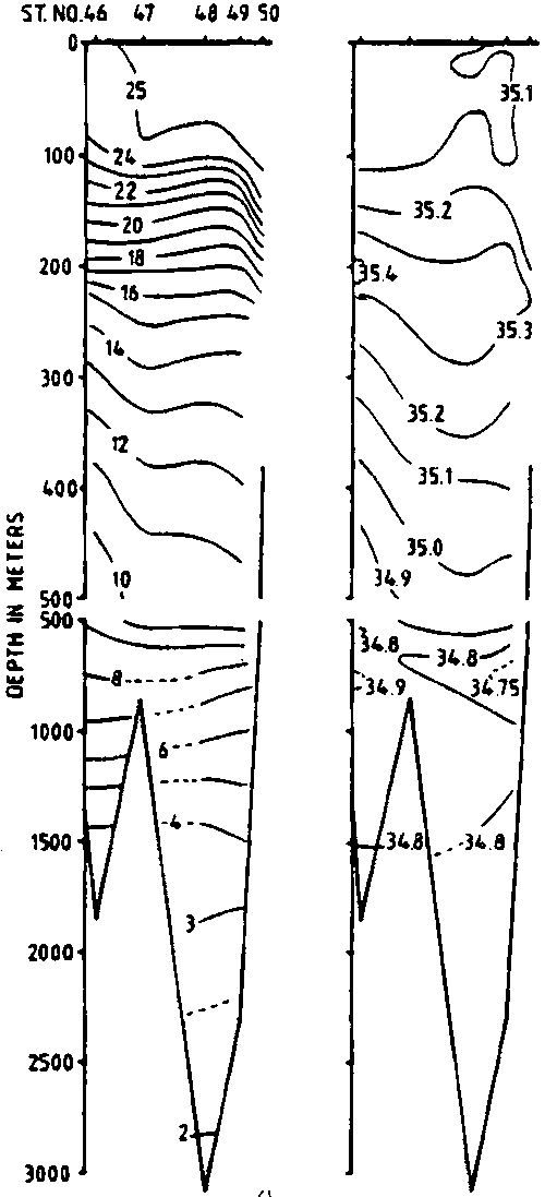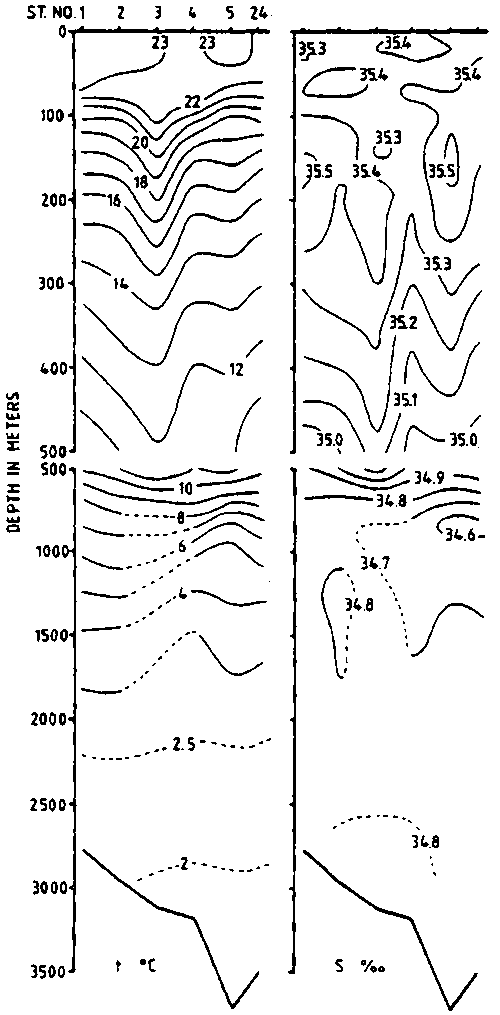 Fig. 23. COMMANDANT ROBERT GIRAUD 1960. Depth of intermediate salinity minimum.