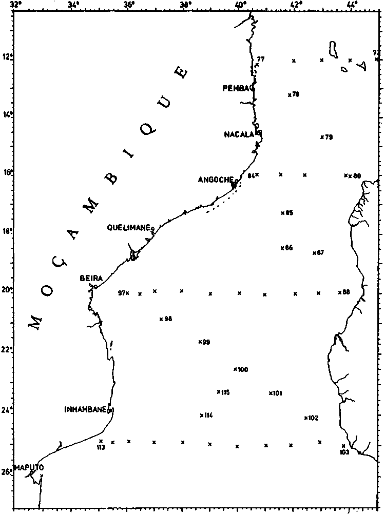 Fig. 31. COMMANDANT ROBERT GIRAUD, 6 Sep.-15 Oct. 1962. Grid of stations.