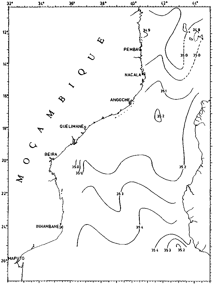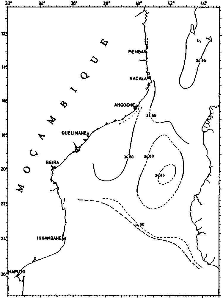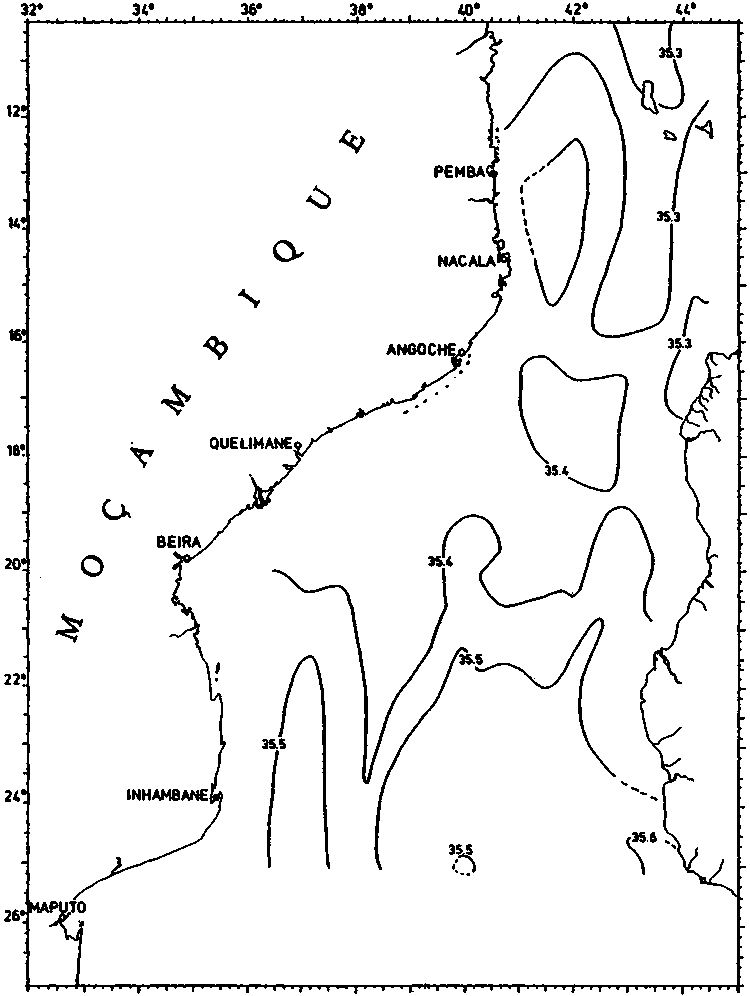 Fig. 34. COMMANDANT ROBERT GIRAUD. Salinity at subsurface salinity maximum.