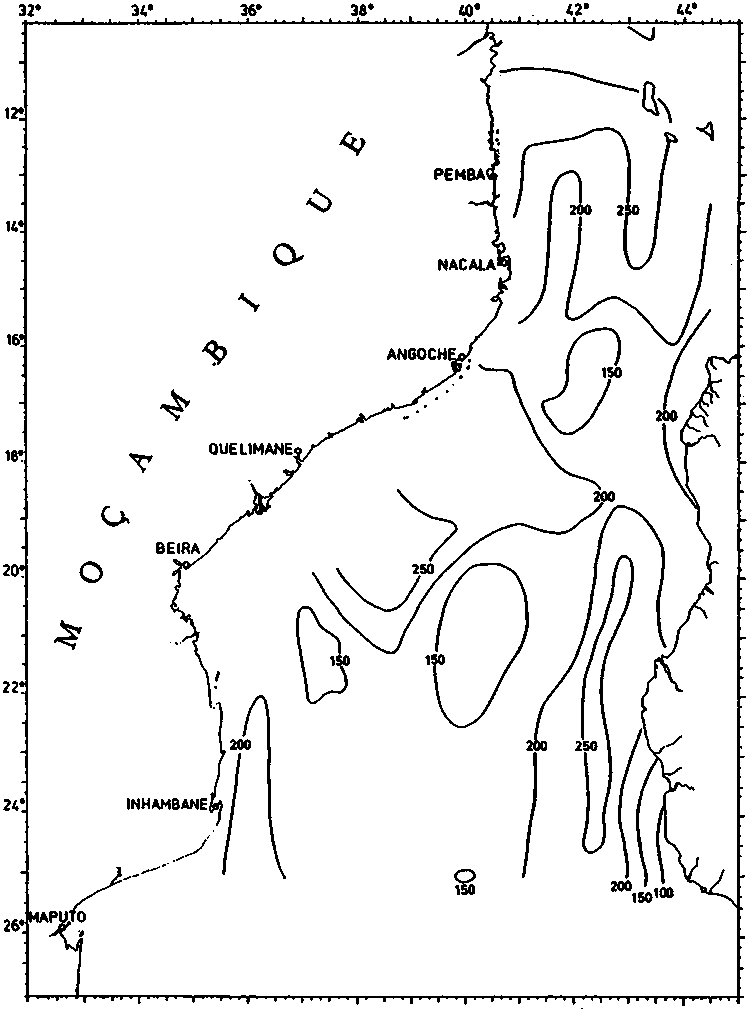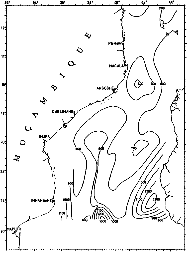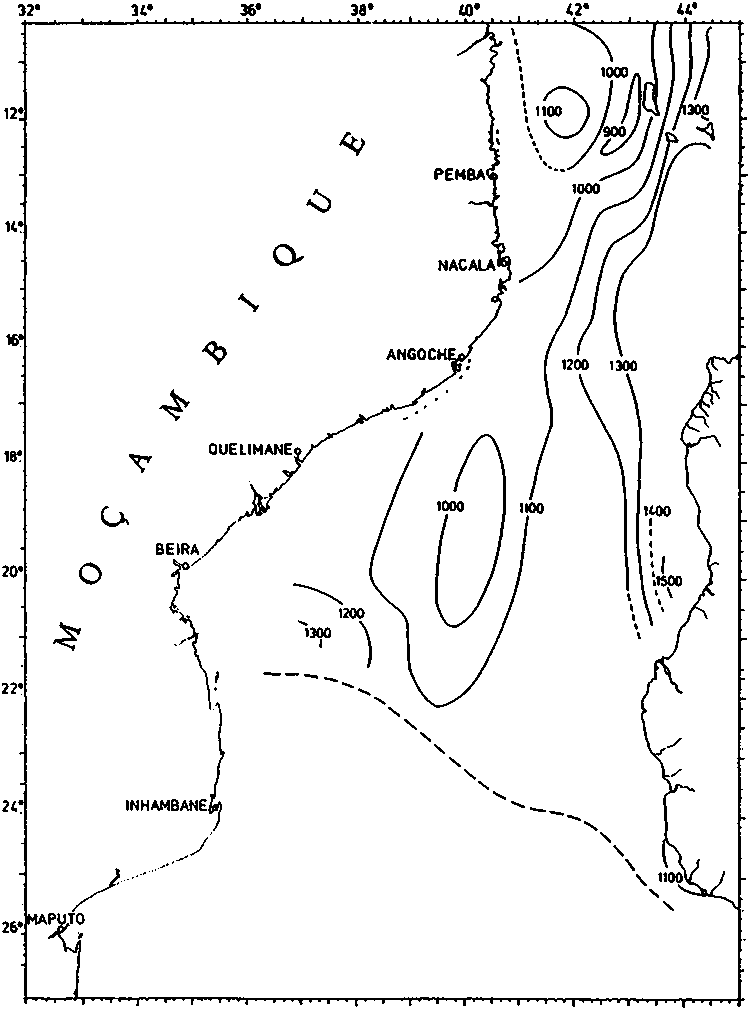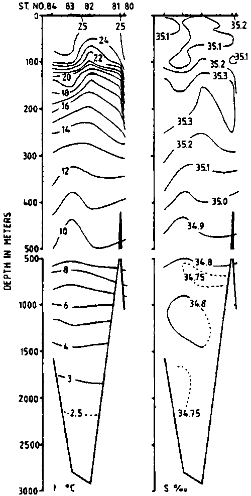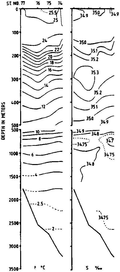 Fig. 35. COMMANDANT ROBERT GIRAUD 1962. Depth of intermediate salinity minimum.