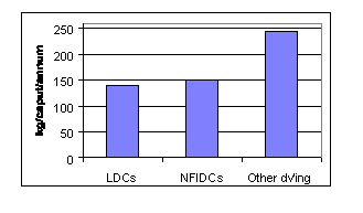 130 et 160 kg par an, est inférieure d'environ 80 - 90 kg par rapport à la