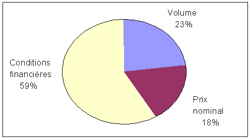 moitié provient de l'augmentation du volume et l'autre moitié provient de