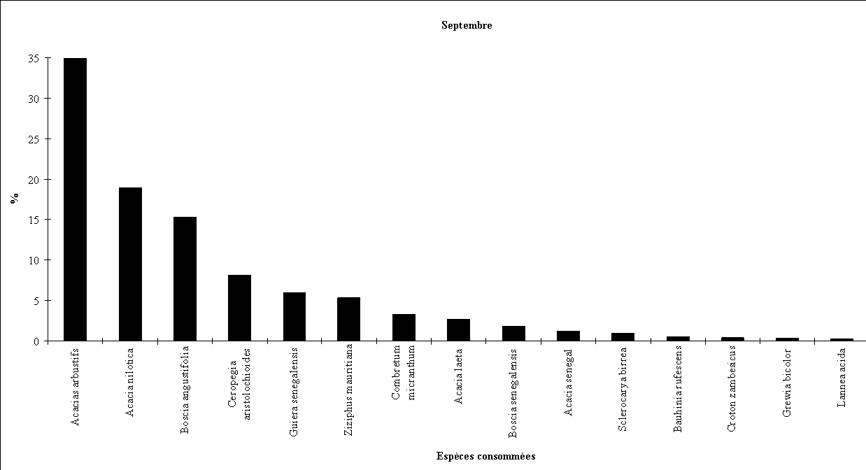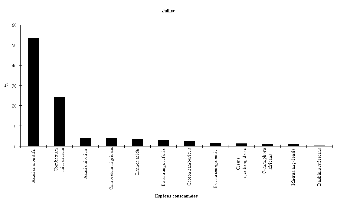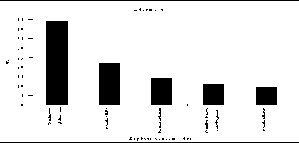- la consommation d'Acacia albida débute fin octobre (feuillaison), augmente régulièrement en novembre et décembre (floraison) puis en janvier et février (fructification) pour cesser totalement par la suite.